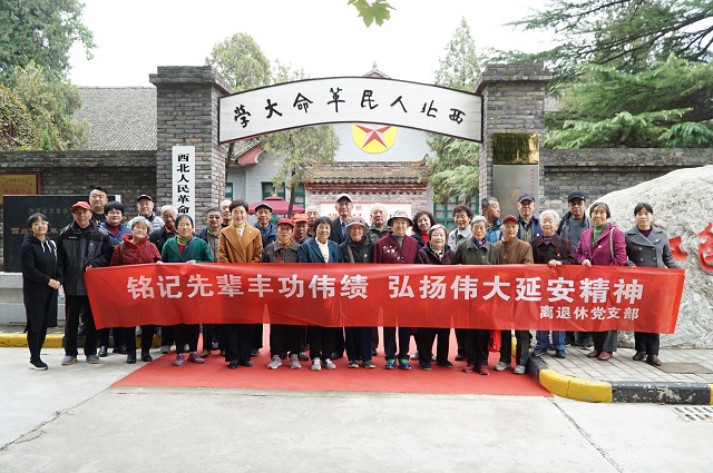10月13日,在重陽佳節來臨之際,我校第六黨支部組織離退休黨員干部赴高陵通遠西北人民革命大學舊址參觀學習,學校領導班子向離退休老同志致以節日問候,黨委副書記、副校長魏萍講黨課。