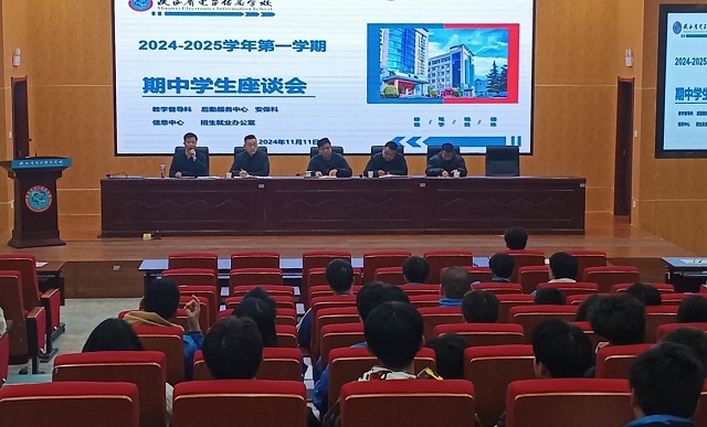 11月11日下午,我校教學督導科、安保科、后勤服務中心、信息中心、招生就業辦聯合召開2024—2025學年第一學期期中學生座談會。會議由教學督導科科長余濟好主持,相關科室負責人、教師與來自80多個班級的300余名學生代表座談交流。