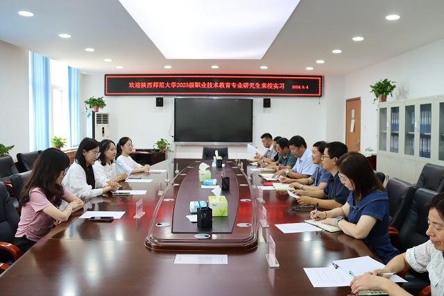 9月4日上午,陜西師范大學職業技術教育專業4名研究生來我校實習,歡迎會在綜合樓一樓會議室召開。學校黨委書記顧學福、校長魏萍及相關科室負責人出席,教務科長張建永主持會議。