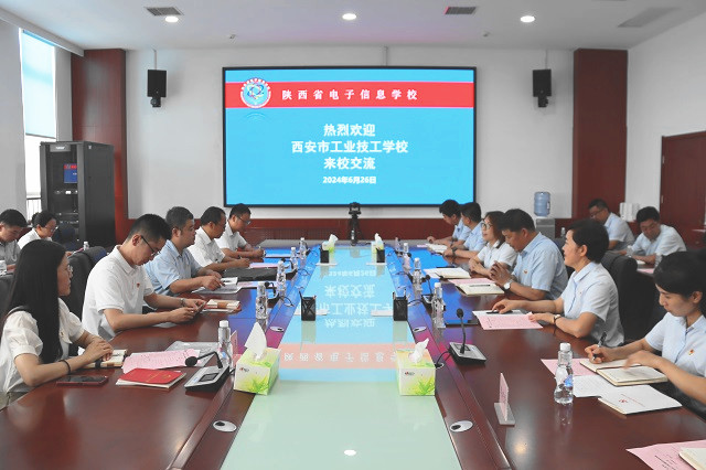 6月26日,西安市工業技工學校黨總支書記李澎濤、副書記白振山及教務黨支部黨員一行11人來我校進行黨建工作交流,與我校第五黨支部聯合開展主題黨日活動。我校黨委書記顧學福,黨委副書記、校長魏萍參加活動。