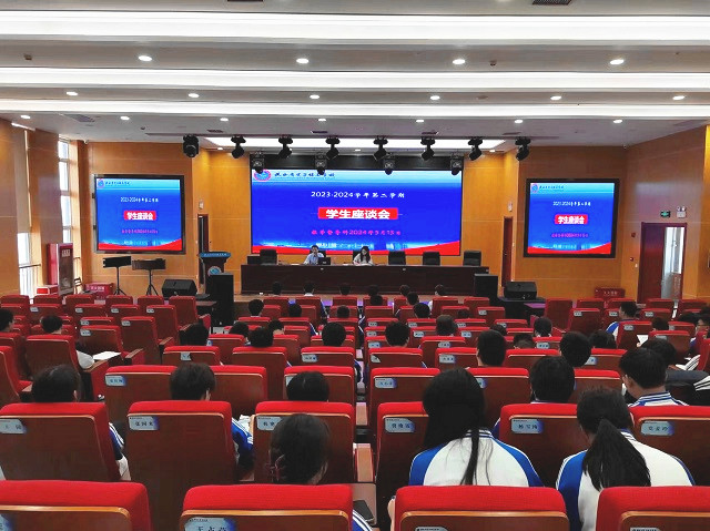5月16日,教務科在綜合實訓樓五樓報告廳召開2023—2024學年第二學期學生座談會。各專業科負責人與76個班級的學生代表座談交流。