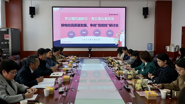 在“三八”國際婦女節到來之際,3月6日下午,“陜電校高質量發展 爭創‘雙優校’研討會”在綜合實訓樓五樓會議室召開。學校黨委書記顧學福、校長魏萍到會講話,工會主席盧仁虎主持 。校工會女職工委員會委員、2024年巾幗標兵、各部門女工代表參加會議。