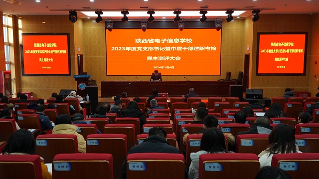 2024年1月4日上午,我校2023年度黨支部書記暨中層干部述職考核民主測(cè)評(píng)大會(huì)在綜合實(shí)訓(xùn)樓五樓報(bào)告廳召開,學(xué)校領(lǐng)導(dǎo)班子成員出席,全校教職工參加。