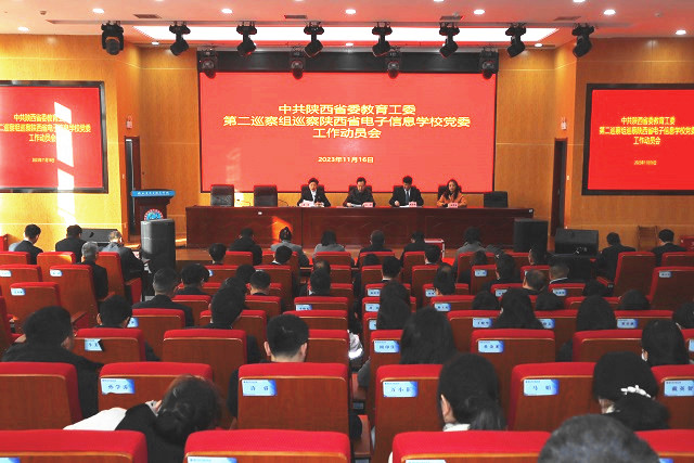 根據陜西省委教育工委統一部署,2023年11月16日,省委教育工委第二巡察組巡察陜西省電子信息學校黨委工作動員會召開。會前,巡察組組長王津向我校黨委書記顧學福傳達了省委教育工委書記劉建林在省委教育工委2023年巡察工作動員部署會上關于巡察工作的講話精神。會上,王津就即將開展的巡察工作作了動員講話,顧學福作表態發言,黨委副書記、校長魏萍主持會議。