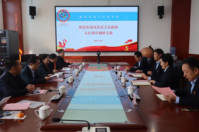 10月20日上午,安康市嵐皋縣人民政府副縣長伍玉蘭,縣教體科技局局長陳守寶、副局長高貴賓,縣職教中心黨總支書記王小勇、教務處主任全孝成,政府辦公室干部張薇薇一行來我校調研交流,我校領導班子、相關科室負責人陪同參觀交流。