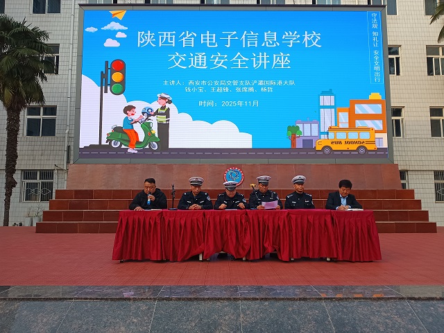 11月3日下午,我校聯合西安市公安局交警支隊浐灞國際港大隊開展交通安全知識專題講座,錢小寶、王超鋒、張席騰、楊哲4名警官在文化廣場為3000余名師生普及交通安全知識,學校校長助理楊永宏出席活動,安保科科長暢建主持講座。