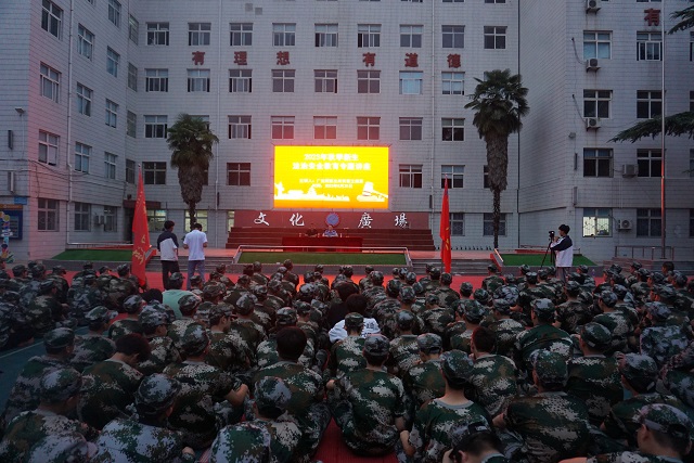 8月24日上午,晴空高朗,秋風送爽,我校2023級1020名新生身著迷彩軍訓服,整齊列隊,在文化廣場集結。軍訓開訓儀式在國歌聲中拉開序幕。學校領導班子成員和相關科室負責人出席開訓儀式,黨委書記顧學福授軍訓旗,校長魏萍講話,紀委書記盧仁虎主持儀式。