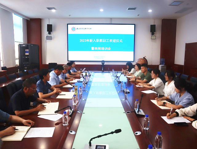 8月23日下午,我校新入職教職工培訓會在綜合實訓樓五樓會議室舉行,學校領導班子成員,黨政辦、教務科負責人出席,9名新任課教師和3名新班主任參加,黨政辦主任王勝武主持培訓會。