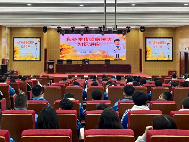 10 月 23 日,我校舉辦秋季傳染病預(yù)防專題講座,聚焦諾如病毒、流感病毒、肺炎支原體感染等秋季高發(fā)傳染病,旨在科學(xué)筑牢校園健康防線。校醫(yī)姚志民擔(dān)任主講,全校各年級(jí)師生代表及班主任共同參與。