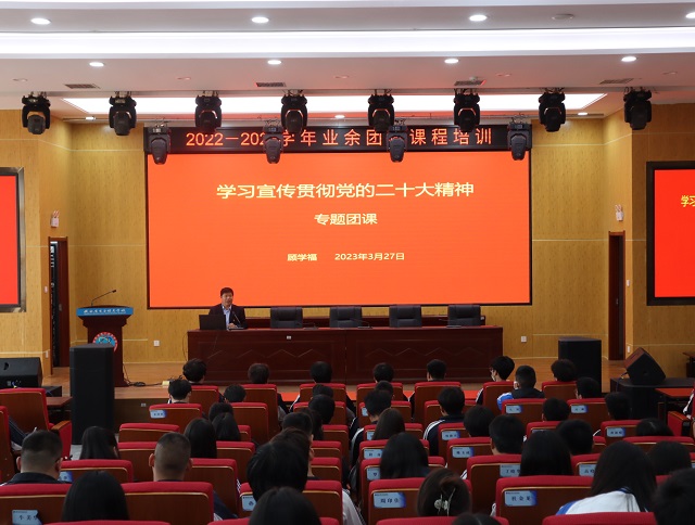 3月27日下午,我校2022—2023學(xué)年業(yè)余團校開班,黨委書記顧學(xué)福在五樓報告廳講授第一課,全校300余名學(xué)生團員聽講。