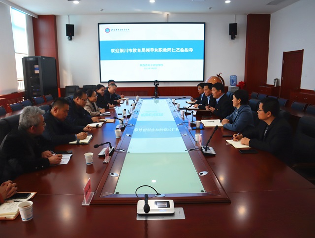 3月2日上午,銅川市教育局四級調研員馬芳琴及五個區縣教育局領導、四所中職學校校長一行12人到我校考察交流。我校黨委書記顧學福、校長魏萍、副校長李孝勇以及教務科、物流與電子專業科負責人參加座談。