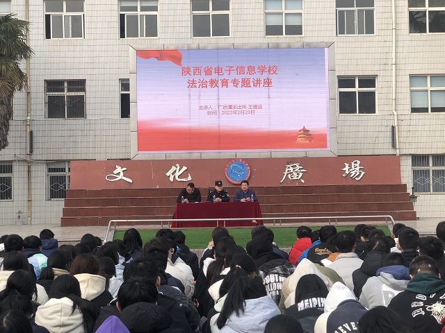 為進一步做好法治宣傳教育,增強我校學生的法律意識和自我保護能力,2月23日下午,學校特邀廣運潭派出所民警、我校法治副校長王煜涵在文化廣場為全校學生作法治教育專題講座,校長助理楊永宏出席并講話。