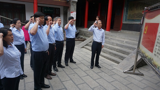在紀(jì)念館,全體黨員面對黨旗,重溫入黨誓詞。一行人參觀陳列館的400多幅照片、文獻(xiàn)資料和實(shí)物,了解根據(jù)地那段崢嶸歲月、紅軍長征的艱難困苦、根據(jù)地人民的慷慨悲歌,為先輩百折不撓的偉大革命精神深深感動。