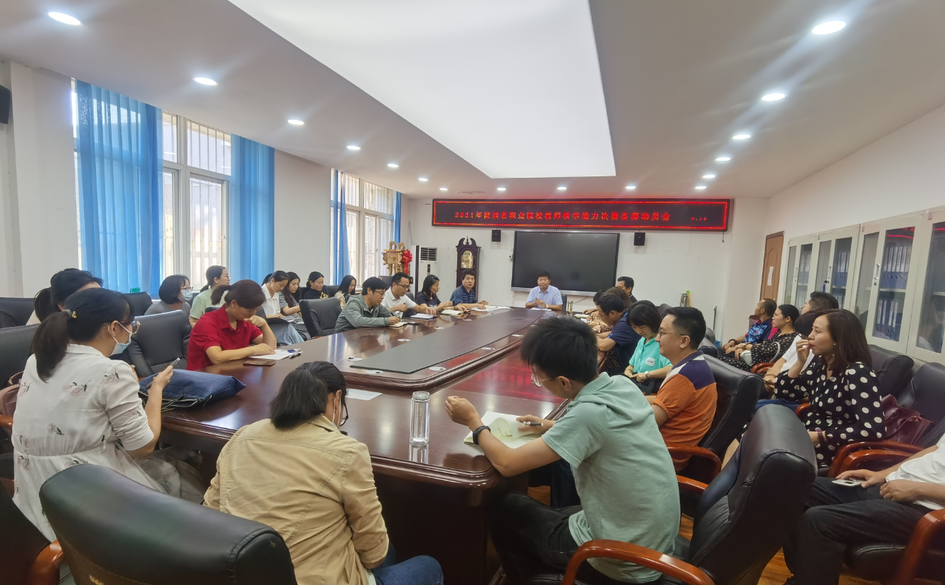 9月13日下午,我校在綜合樓一樓會議室召開2021年陜西省職業院校教師教學能力決賽備賽動員會,校長顧學福出席并講話,副校長李孝勇和各教學科室負責人及入圍決賽的教師參加,校長助理楊永宏主持會議。