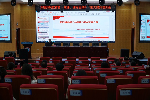9月15日下午,我校舉行師德師風教育暨思政課、課程思政教學能力提升培訓會,特邀2020年陜西省“思政大練兵”教學標兵、陜西工業職業技術學院形勢政策教研室主任程軍棟副教授為全體教職工作專題講座,我校副校長李孝勇主持培訓會,校長助理楊永宏講話。