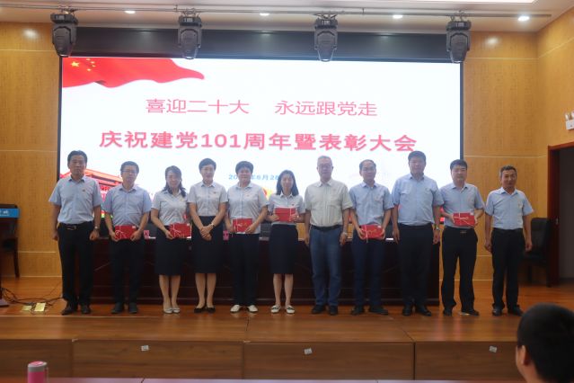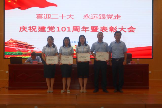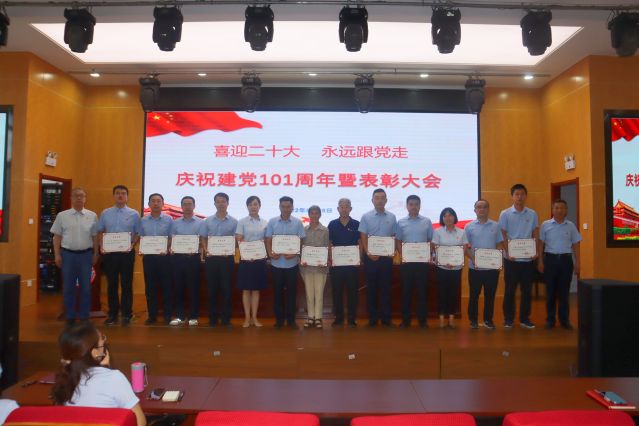 6月28日,“喜迎二十大 永遠跟黨走”慶祝建黨101周年暨表彰大會在我校綜合實訓樓五樓報告廳舉行,學校領導班子成員出席,全體教職工和部分離退休黨員參加。