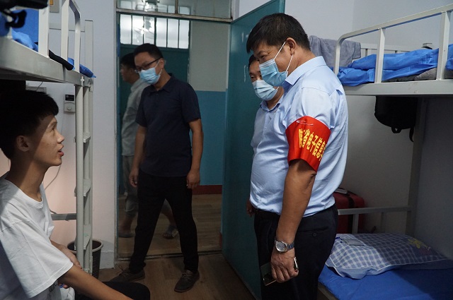 省教育廳職成教處一級(jí)調(diào)研員滾多海檢查我校開學(xué)準(zhǔn)備工作和校園疫情防控工作