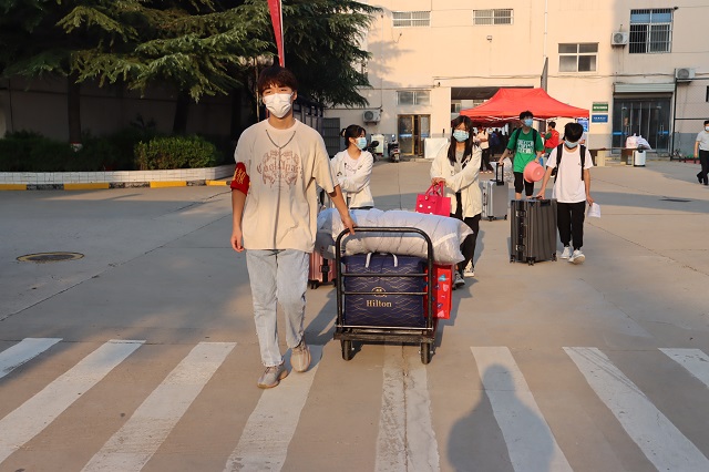 ——熱情服務(wù),精心保障。開學(xué)日,全體教職工和志愿者7:00準(zhǔn)時(shí)到崗,嚴(yán)格履行崗位職責(zé),扎實(shí)做好本職工作。學(xué)生們經(jīng)過掃碼、測(cè)溫等疫情防控流程,與家長(zhǎng)揮手道別。穿梭在校園里的“紅馬甲”和教職工,熱心幫助學(xué)生搬運(yùn)行李、完成報(bào)到手續(xù)、領(lǐng)取公寓物品、進(jìn)入學(xué)生公寓,整個(gè)過程忙而不亂,緊張有序。學(xué)生報(bào)到當(dāng)日,即進(jìn)行一次核酸檢測(cè),隨后將按照開學(xué)疫情防控要求,嚴(yán)格落實(shí)2、3、5、7全員核酸檢測(cè),確保“不落一人、應(yīng)檢盡檢”。學(xué)生們嚴(yán)格執(zhí)行學(xué)校的靜態(tài)管理政策,不堂食、不軍訓(xùn)、不聚集、不舉辦大型會(huì)議、論壇等聚集性活動(dòng)。