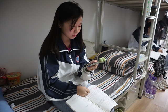 學生返校后在宿舍線上聽課