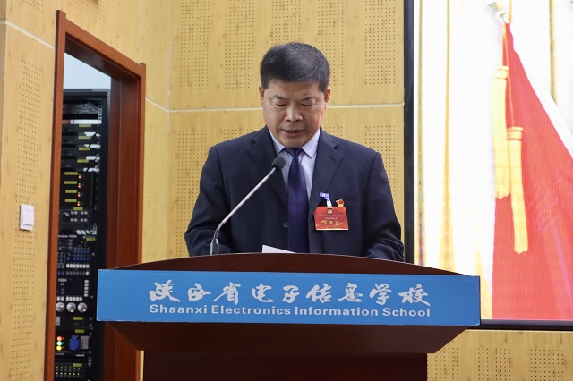 12月15日下午,中國共產黨陜西省電子信息學校第八次黨員大會在實訓樓五樓報告廳勝利召開,全校60名在職黨員參會。會議由黨委副書記、校長魏萍主持,黨委書記顧學福作黨委工作報告、致閉幕詞,黨委副書記、紀委書記盧仁虎作紀委工作報告。會議審議并通過了黨委工作報告和紀委工作報告,選舉產生了中共陜西省電子信息學校委員會第八屆黨委委員和紀委委員。