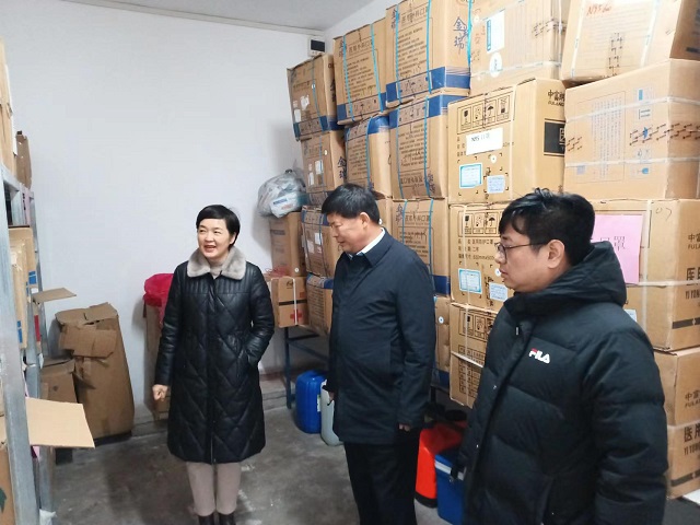 黨委書記顧學福、校長魏萍檢查防疫物資庫