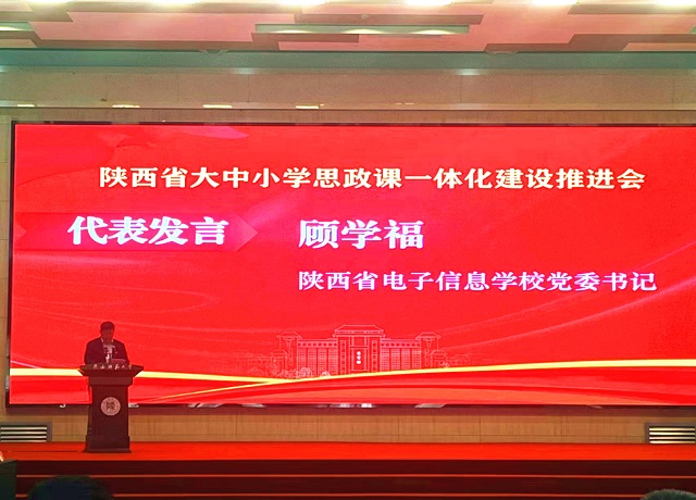 4月6日上午,陜西省委教育工委、省教育廳在陜西師范大學(xué)召開全省大中小學(xué)思政課一體化建設(shè)推進(jìn)會(huì),省委教育工委書記劉建林出席會(huì)議并講話。省委教育工委委員、省教育廳副廳長(zhǎng)趙昶葆主持會(huì)議。我校黨委書記顧學(xué)福參會(huì),并代表中等職業(yè)學(xué)校在會(huì)上作題為“聚焦課堂 突出實(shí)踐,把思想政治工作貫穿教育教學(xué)全過程”交流發(fā)言。