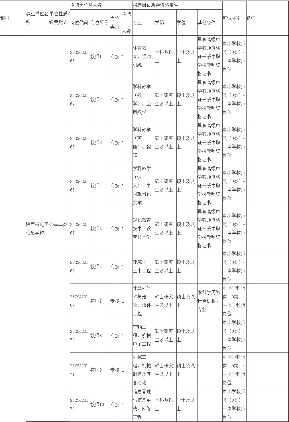 2023年陜西省電子信息學校公開招聘工作人員崗位表