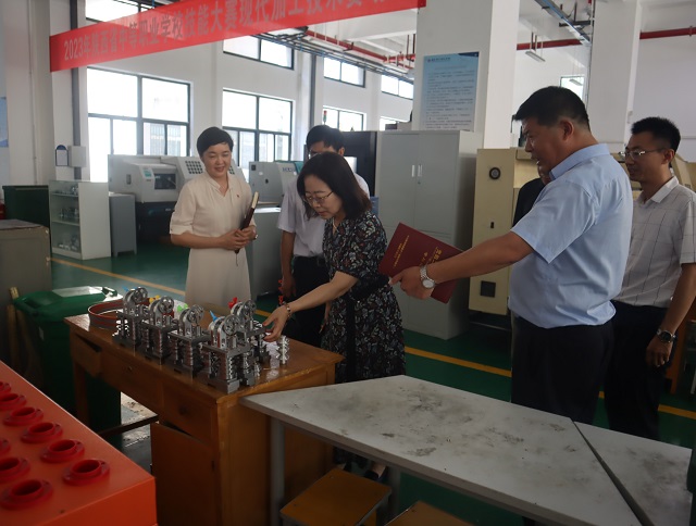 6月15日,中華職業教育社副總干事李英愛、陜西中華職業教育社辦公室負責人姜守新、深圳第二高級技工學校原校長黃景容來我校調研,我校黨委書記顧學福、校長魏萍、校長助理胡振彪陪同參觀座談。