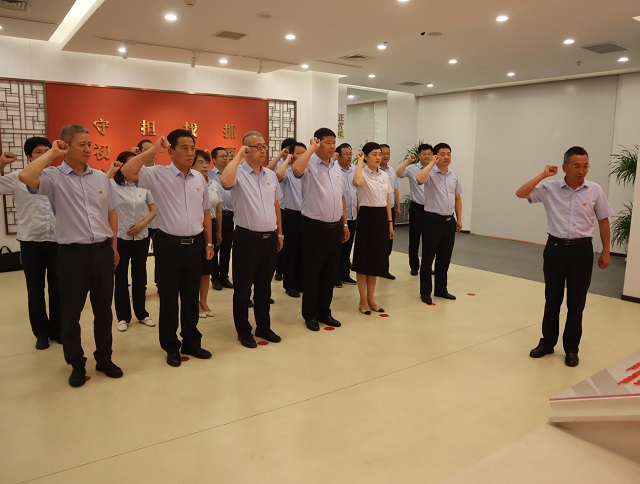 黨員干部面對黨旗重溫入黨誓詞