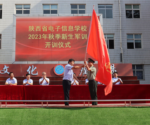 8月24日上午,晴空高朗,秋風送爽,我校2023級1020名新生身著迷彩軍訓服,整齊列隊,在文化廣場集結。軍訓開訓儀式在國歌聲中拉開序幕。學校領導班子成員和相關科室負責人出席開訓儀式,黨委書記顧學福授軍訓旗,校長魏萍講話,紀委書記盧仁虎主持儀式。