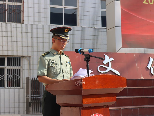 常明鑫代表全體教官發言,表示將以身作則,認真履行教官應盡的職責,以軍人的姿態完成軍訓任務,以兄長之情關心愛護學生。機電2333班李紫涵代表新生發言,表示將服從命令,聽從指揮,苦練基本功,磨煉意志,把在軍訓中養成的良好習慣,學到的好思想、好作風繼續發揚下去。
