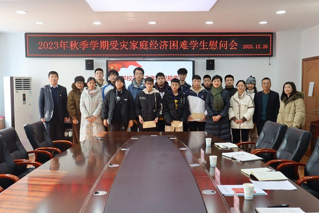 12月26日,我校2023年秋季學期受災害家庭經濟困難學生資助慰問會在綜合樓一樓會議室召開。我校黨委書記顧學福、校長魏萍出席并講話,黨委副書記盧仁虎主持會議。相關科室人員、9名受資助學生及其班主任參加會議。